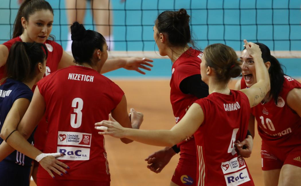 ΟΛΥΜΠΙΑΚΟΣ (Λορέντζο Μιτσέλι): Λαμπρούση 4 (3/4 επ., 1 μπλοκ), Καρράρο 2 (1/2 επ., 1 άσσος), Μλέινκοβα 13 (9/26 επ., 2 άσσοι, 2 μπλοκ, 50% υπ.-42% άριστες), Εμμανουηλίδου 9 (3/8 επ., 6 μπλοκ), Κούμπουρα 18 (14/32 επ., 4 μπλοκ), Νίζετιχ 7 (5/12 επ., 2 άσσοι, 60% υπ.-47% άριστες) / Αρτακιανού (λ. 47% υπ.-7% άριστες), Σαμπάτη, Τάνη