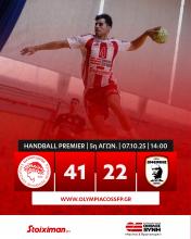Το «πέντε στα πέντε» στο φετινό πρωτάθλημα πανηγύρισε η ομάδα χάντμπολ Ανδρών του Ολυμπιακού/Ομίλου Ξυνή. Την Τρίτη (7/10) το μεσημέρι, οι «ερυθρόλευκοι» πρωταθλητές Ελλάδας νίκησαν εύκολα με 41-22 τον Ζαφειράκη Νάουσας στο κλειστό γυμναστήριο της Ηλιούπολης, για την 5η αγωνιστική της Handball Premier, με πρώτο σκόρερ τον Εσκαλόνα με επτά γκολ (έξι ο Πέσο, πέντε ο Τζίμπουλας).