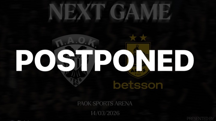 «O αγώνας ΠΑΟΚ - Άρης Betsson που ήταν προγραμματισμένος για το Σάββατο 14 Μαρτίου 2026 (18:15), για την 21η αγωνιστική της Stoiximan GBL, αναβάλλεται.