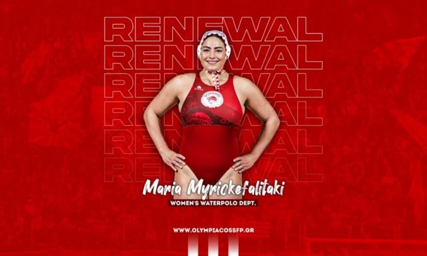 Ο ΟΛΥΜΠΙΑΚΟΣ Σ.Φ.Π. ανακοινώνει την ανανέωση της συνεργασίας του με την Μαρία Μυριοκεφαλιτάκη. Η διεθνής φουνταριστή υπέγραψε το νέο της συμβόλαιο και παραμένει στο ρόστερ της ομάδας πόλο Γυναικών του συλλόγου.