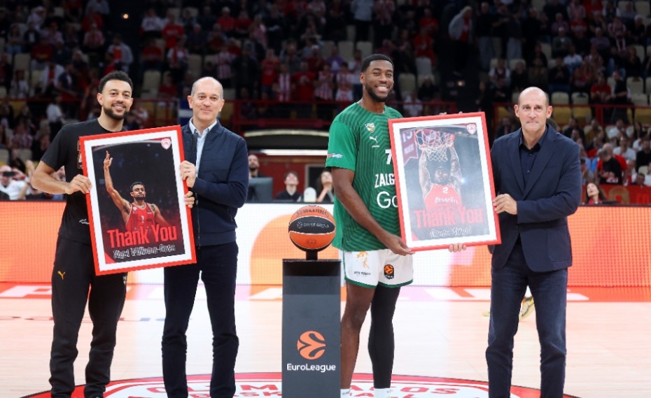 Οι δυο Αμερικανοί , οι οποίοι αγωνίστηκαν στους «ερυθρόλευκους» τη προηγούμενα διετία βραβεύτηκαν από την ΚΑΕ Ολυμπιακός για την προσφορά τους στην ομάδα βράβευσε η ΚΑΕ Ολυμπιακός πριν την έναρξη του αγώνα με την Ζαλγκίρις Κάουνας.