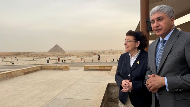 Η υπουργός Πολιτισμού Λίνα Μενδώνη ξεναγήθηκε στο Grand Egyptian Museum, το οποίο εγκαινιάσθηκε τον περασμένο Νοέμβριο, αποτελώντας ένα από τα μεγαλύτερα και πλέον σύγχρονα αρχαιολογικά μουσεία στον κόσμο. Φιλοξενεί περισσότερα από 75.000 αρχαία αντικείμενα, αναδεικνύοντας, με εξαιρετικό τρόπο, τη μοναδική συνεισφορά του αρχαίου αιγυπτιακού πολιτισμού. Κατά τη διάρκεια της ξενάγησης, ενημερώθηκε για τις προηγμένες εκθεσιακές υποδομές, τα σύγχρονα εργαστήρια συντήρησης και τις καινοτόμες τεχνολογίες που εφαρμόζονται όχι μόνο για την προστασία και ανάδειξη των αρχαιοτήτων, αλλά και για το ρόλο Grand Egyptian Museum, ως διεθνούς κέντρου έρευνας, εκπαίδευσης και πολιτιστικής συνεργασίας.