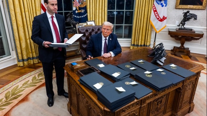 Με βομβαρδισμό προεδρικών εκτελεστικών διαταγμάτων τα οποία υπέγραψε τις πρώτες ώρες της δεύτερης θητείας του και ορισμένα από τα οποία μοιάζουν να αντίκεινται προς το Σύνταγμα των ΗΠΑ, κι είναι βέβαιο πως θα αμφισβητηθούν στις δικαστικές αίθουσες.