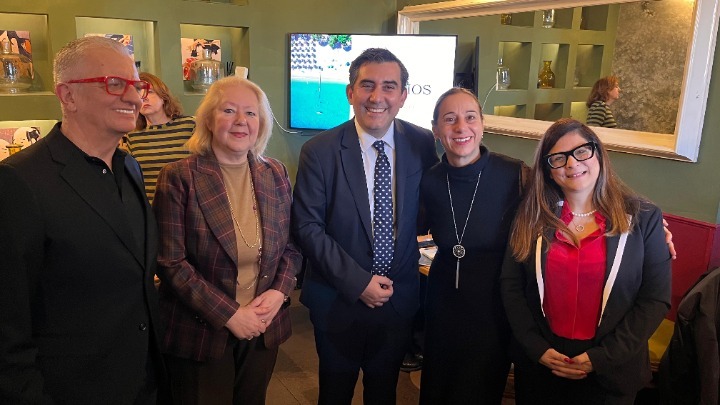 ΦΩΤΟ: Από αριστερά, ο αντιδήμαρχος Σκιάθου, Αλέξανδρος Ευσταθίου, η πρέσβης στην Ρώμη Ελένη Σουρανή, ο δήμαρχος Σκιάθου Θοδωρής Τζούμας, η πρόεδρος του Ιταλικού Οργανισμού Τουρισμού, Αλεσσάντρα Πριάντε, και η διευθύντρια του γραφείου ΕΟΤ Ιταλίας, Κυριακή Μπουλασίδου.