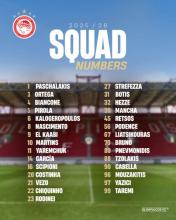 Οι ερυθρόλευκοι με ποστάρισμά τους στα social media ενημέρωσαν ποια νούμερα θα φορούν στις φανέλες τους οι Πειραιώτες.