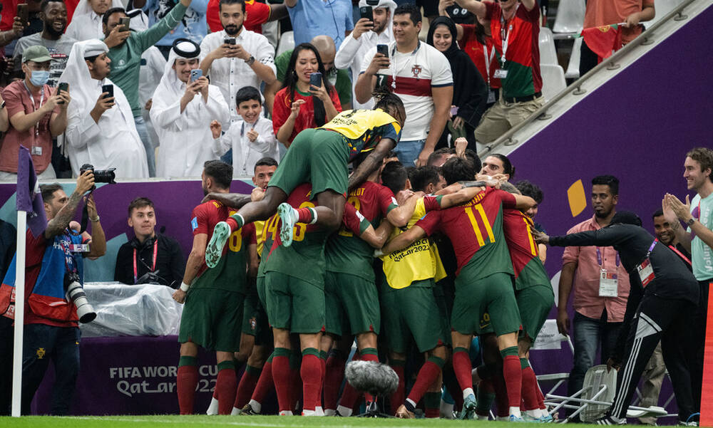 Από ωραία ασίστ του Ζοάο Φέλιξ, ο Γκονσάλο Ράμος γύρισε το σώμα του και με τρομερό σουτ άνοιξε το σκορ . Στο 33’ από κόρνερ του Μπρούνο Φερνάντες, ο Πέπε με άπιαστη κεφαλιά έγραψε το 2-0 κι έγινε ο δεύτερος γηραιότερος παίκτης που σκοράρει σε τελική φάση Μουντιάλ μετά τον Ροζέ Μιλά.
