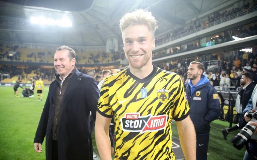 Ο Τομ Φαν Βέερτ δεν μπορούσε να κρύψει τη χαρά του για το όμορφο απόγευμα που είχε οδηγώντας με δύο γκολ και μία ασίστ την ΑΕΚ στη νίκη με 3-0 επί της Λαμίας.