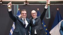 Το Euronext Technology and Support Centre στην Αθήνα εγκαινίασαν σήμερα το πρωί ο υπουργός Εθνικής Οικονομίας και Οικονομικών και πρόεδρος του Eurogroup Κυριάκος Πιερρακάκης με τον Γάλλο ομόλογό του Roland Lescure, παρουσία του διευθύνοντος συμβούλου της Euronext, Stéphane Boujnah.