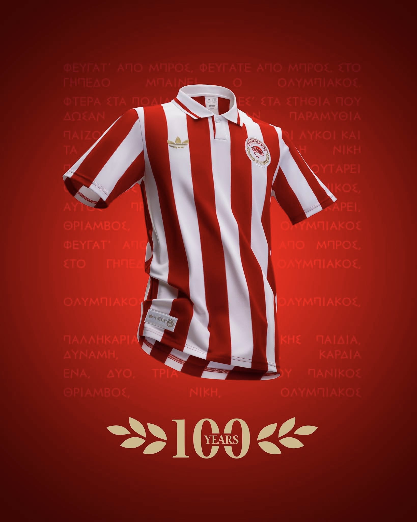 Έτσι, μέσω των social media και με το σλόγκαν «Κόκκινο για το πάθος μας, λευκό για την αγνή μας αγάπη», ο Ολυμπιακός παρουσίασε τη συλλεκτική και άκρως εντυπωσιακή εμφάνιση για την επέτειο των 100 ετών, η οποία θα φορεθεί στο επικείμενο ματς της 26ης αγωνιστική με αντίπαλο τον ΟΦΗ στο «Γεώργιος Καραϊσκάκης»!