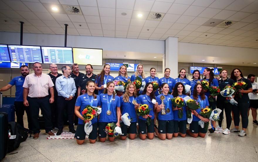 Mε το χαμόγελο να λάμπει στα πρόσωπά τους, , αλλά και με το χρυσό μετάλλιο να φωτίζει τα πρόσωπά τους επέστρεψαν στην Αθήνα λίγο πριν τις 8 το πρωί από τη Σιγκαπούρη τα μέλη της Εθνικής πόλο Γυναικών, που κατέκτησαν το Παγκόσμιο Πρωτάθλημα Υγρού Στίβου. Στις δηλώσεις των πρωταγωνιστών κυριάρχησαν η συγκίνηση, η χαρά, η έκπληξη για το πλήθος των ΜΜΕ, αλλά και το παράπονο για τη μικρή προβολή του αθλήματος, όπως και η ανάγκη για μεγαλύτερη στήριξη από την πολιτεία.