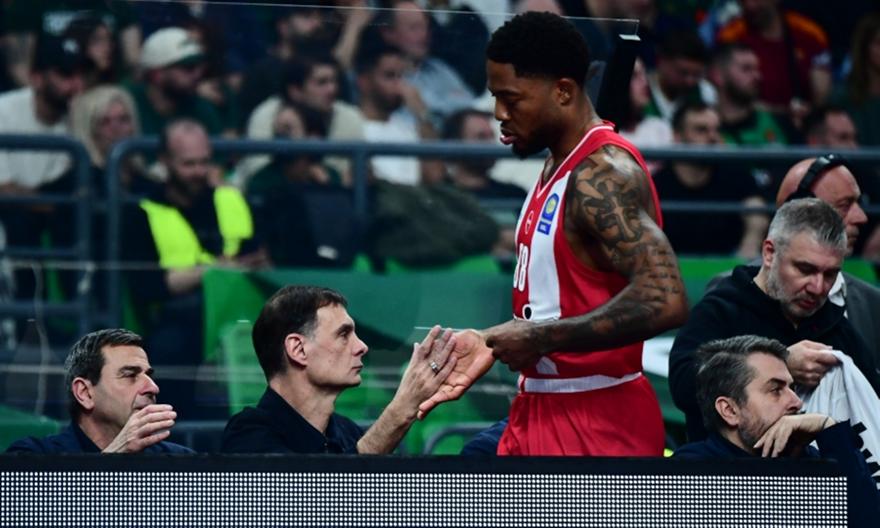 Ο Αμερικανός σέντερ των «ερυθρόλευκων» αποχώρησε από το glass floor με προορισμό τα αποδυτήρια λίγο πριν το φινάλε του αγώνα, αντιμετωπίζοντας ενοχλήσεις στη γάμπα του αριστερού του ποδιού.