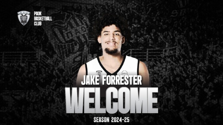 «Η ΚΑΕ ΠΑΟΚ mateco ανακοινώνει την συμφωνία με τον Αμερικανό καλαθοσφαιριστή Jake Forrester, ο οποίος θα αγωνιστεί στην ομάδα μας την αγωνιστική περίοδο 2024-25. Καλωσορίζουμε τον Jake στη μεγάλη οικογένεια του ΠΑΟΚ.