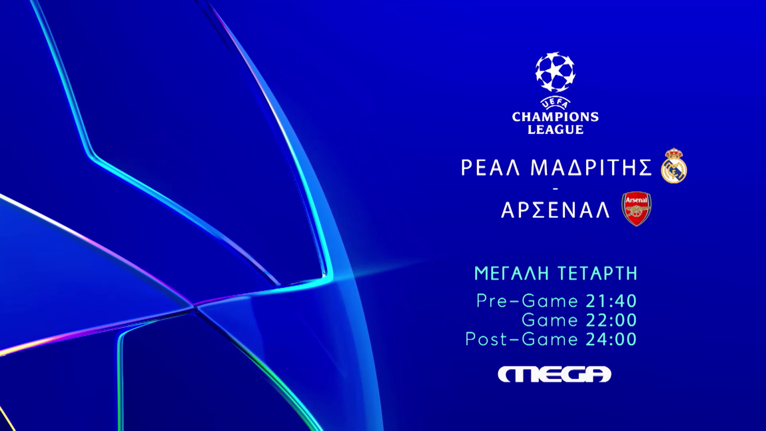 Η φάση των «8» του UEFA Champions League ολοκληρώνεται με μια δυνατή ποδοσφαιρική μάχη. Τη Μ. Τετάρτη 16 Απριλίου, το MEGA φέρνει ζωντανά στις οθόνες μας τη μεγάλη ρεβάνς της Ρεάλ Μαδρίτης με την Άρσεναλ, στις 22:00.