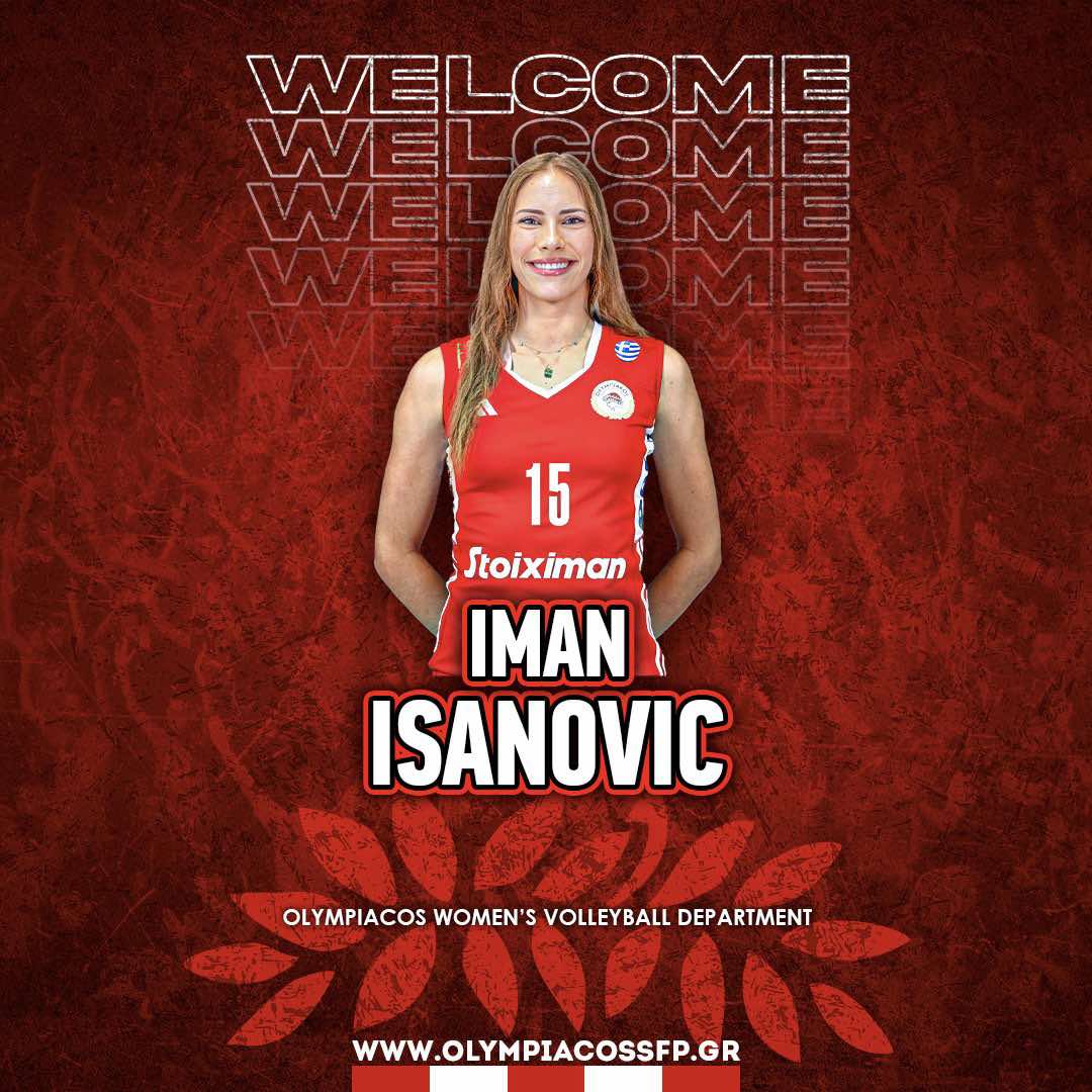 «Ο ΟΛΥΜΠΙΑΚΟΣ Σ.Φ.Π. ανακοινώνει την έναρξη της συνεργασίας του με την Ιμάν Ισάνοβιτς. Η διεθνής Βόσνια ακραία (ημ. γέννησης 28/8/1999, 1,88μ.) υπέγραψε το νέο της συμβόλαιο και εντάσσεται στο ρόστερ της ομάδας βόλεϊ Γυναικών του συλλόγου. Η Ιμάν Ισάνοβιτς μετακομίζει στον Θρύλο από την Άλμπα Μπλαζ, στην οποία αγωνίστηκε από τη σεζόν 2023-24, κατακτώντας ένα Super Cup Ρουμανίας».