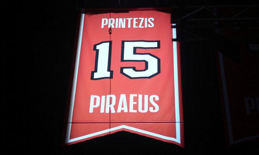 Συγκεκριμένα, λίγο πριν το τζάμπολ της αναμέτρησης των «ερυθρόλευκων» με τη Μακάμπι Τελ Αβίβ, ο πρωταγωνιστής της βραδιάς μαζί με τη μητέρα του, Χρύσα, την γυναίκα του, Στέλλα αλλά και την κόρη τους, πάτησαν μαζί το κουμπί που ανέβασε τη φανέλα με τον αριθμό 15 στον ουρανό του ΣΕΦ!