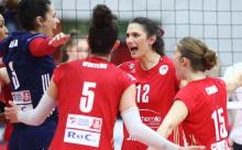 Μάλιστα, οι «πράσινες» παρότι βρέθηκαν να χάνουν το πρώτο σετ με 11 πόντους διαφορά, (14-25) κατάφεραν να ανακτήσουν ψυχολογία, παίρνοντας το δεύτερο με 25-20. Ωστόσο στο τρίτο οι ανώτερες Ιταλίδες, έκαναν επίδειξη δύναμης και «σφράγισαν» την πρόκριση τους στην επόμενη φάση του Challenge Cup μετά το 25-19.
